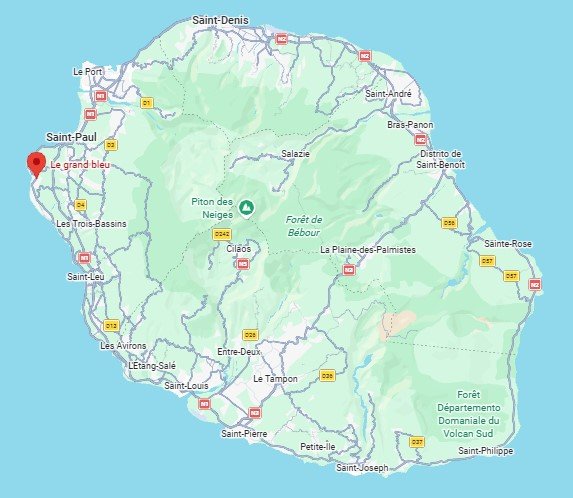 L’Hôtel Le Grand Bleu est situé au cœur de Saint-Gilles-les-Bains, le village balnéaire le plus célèbre de la côte ouest. Son emplacement permet de vivre l’animation locale sans voiture : la plage des Roches Noires et le port de plaisance sont accessibles en quelques minutes à pied.