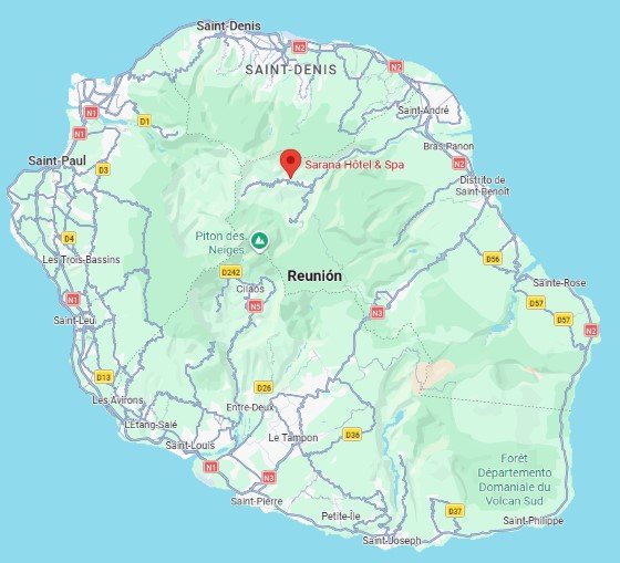 Sarana Hôtel & Spa is located in Mare à Vieille Place, a privileged location within the Salazie cirque, renowned for being the greenest and most waterfall-rich area of Reunion Island.